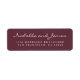 Chic, modern and simple wedding return address label with your names in white elegant handwritten script calligraphy and modern typography on a burgundy background. Simply add your names and address to all your wedding RSVP envelopes. Exclusively designed for you by Happy Dolphin Studio. If you need any help or matching products please contact us at happydolphinstudio@outlook.com. We're happy to help you make your wedding the most beautiful day!
