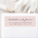 Chic, modern simple wedding return address label with your names in elegant handwritten script calligraphy and modern typography on a pastel pink background. Simply add your names and address to all your wedding RSVP envelopes. Exclusively designed for you by Happy Dolphin Studio. If you need any help or matching products please contact us at happydolphinstudio@outlook.com. We're happy to help you make your wedding the most beautiful day!