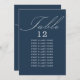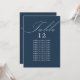 Navy Blue wedding table seating card with elegant calligraphy and editable typography. Simple, modern minimalist design to suit your wedding colours. Table is lettered in handwritten script and the template is ready for you to edit the table number and your guest seating list.