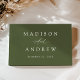 This elegant wedding guest book is perfect for stylish, modern weddings. The guest book features your names and wedding date in white lettering with an olive green background. Add your custom text to the spine of the minimalist wedding guest book. The back of the olive green wedding guest book features your horizontal engagement photo.