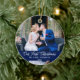 Elegant Calligraphy Script Our First Christmas Photo Blue Ornament with Snowflakes back - Perfect for a Wedding Photo or Couple Photo