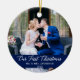 Elegant Calligraphy Our First Christmas Blue Ceramic Ornament