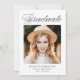 Elegant graduation announcement featuring "Graduate" displayed at the top in a black calligraphy script. The design features the graduate's photo with the graduate's name, school name, and graduation year shown below. The photo graduation announcement reverses to display optional text such as future plans, graduation party details, etc. The chic graduation announcement is perfect for announcing the graduation of both high school and college graduates.