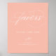 Elegant Calligraphy Melon Pink Minimal Leaf Favor Sign.