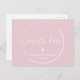 NewParkLane - Sophisticated personalized postcard, with a 'Save the Date' quote in elegant script typography with glyphs / calligraphy, a tiny white heart, and a dotted round frame, against a dusty pink background.