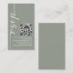 Mini size Elegant Calligraphy QR Code Sage Wedding RSVP, perfectly sized to enclose with your invitations, RSVP is in a set elegant calligraphy rotated and to the left, with your message to the right. Easily personalise the rest of the text to your own details and replace the sample QR code on the back with your own by changing the sample url to your website url and your qr code will generate automatically.