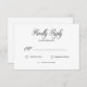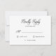 Classical elegant rsvp card with script decorative font which accentuates this card and its minimalist colour scheme. Simple effective often understated black and white design. Come and see the whole collections in our store for a complete wedding experience.