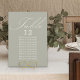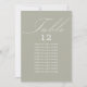 Sage Green wedding table seating card with elegant calligraphy and editable typography. Simple, modern minimalist design to suit your wedding colours. Table is lettered in handwritten script and the template is ready for you to edit the table number and your guest seating list.