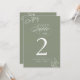 Elegant Calligraphy Minimalist Botanical Plant Leaf Sage Table Number Card.