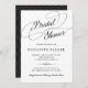Elegant classy black and white classic calligraphy bridal shower invitation featuring a handwritten script with swirls. +++++++++++++ Suitable for traditional formal chic bridal parties. +++++++++++++ NOTE that the background colour on the front and back are editable. You can change them with your wedding colour palette after selecting CUSTOMIZE option.