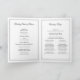 Create a customised folded wedding program using this template design featuring lovely calligraphy script text highlighting the front of the program with special text template to personalise with your detailed information. You can add or remove lines of text as needed to accommodate your desired text. Edit the text template with your details, then choose "click to customise further" to move text as needed or make further edits.