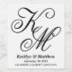 Add an elegant personalised touch to wedding reception decorations with custom wine labels. All text on this template is simple to personalise for a wedding, engagement party, couple's bridal shower, anniversary or other occasion. The couple's monogrammed initials are simple to customise, and it's easy to further adjust the size and position of the letters using the Zazzle design tool. The black and white design features romantic vintage script typography inspired by the traditional calligraphy lettering of the Regency era. These stylish wine labels add a unique customised touch to a special day celebration. Congratulations to the bride and groom!