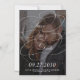 Black and white trendy modern classic elegant swirls calligraphy script couple engagement dark photo overlay wedding save the date magnetic card.