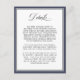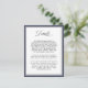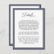 This simple elegant wedding enclosure card is designed to provide your invited guests special details and information surrounding your wedding day. The white card is bordered in navy blue with a thin black line to add a bit of colour to the design. You can use this enclosure card to provide suggested hotel information, driving directions, your wedding registry, wedding web site, and other details you wish to provide. Simply edit the sample text template with your information. You can move the text around, change the font type as well as the background colour of this card.