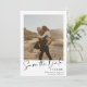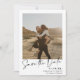 Elegant script calligraphy simple 2 photos black and white wedding save the date.