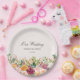 Elegant Calligraphy Watercolor Rose Flower Wedding Paper Plate