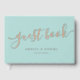 Elegant wedding guest book with the text "guest book" in an elegant calligraphy script font. Real foil text on light aqua blue or custom colour background. The background colour can be changed in the design tool.