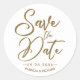 Elegant Calligraphy Wedding Save The Date Gold Classic Round Sticker