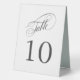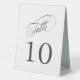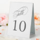 A convenient table tent sign with elegant table number and calligraphy script spelling out the word "table" with numbers that you edit for each table. This design is a versatile choice for weddings, banquets, dinners, luncheons, and parties. The neutral white and deep charcoal grey colour scheme works well with all themes. To create table numbers for each table, personalise a single sign for Table 1 and add to cart, then personalise a table sign for Table 2 and add to cart, and so on until you have a sign for each table.