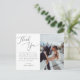 Custom-designed wedding thank you postcard featuring modern romantic style hand lettering. Personalise with your wedding photo and thank you notes.