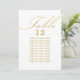 White and gold wedding table seating card with elegant calligraphy and editable typography. Simple, modern minimalist design to suit your wedding colours. Table is lettered in handwritten script and the template is ready for you to edit the table number and your guest seating list.