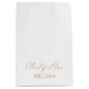 Looking for the perfect way to thank your maid of honour for being a part of your special day? These Elegant Minimalist White Bridesmaid Favours Medium Gift Bags are just what you need! The crisp white background gives these bags a timeless and sophisticated look, making them the perfect complement to any wedding theme. Say "thank you" to your bridesmaids in style with these elegant and sophisticated gift bags! Designed to coordinate with for the «Chloe» Wedding Invitation Collection. View the collection link on this page to see all of the matching items in this beautiful design.