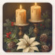Elegant candle Christmas holly pine warm festive Square Paper Coaster