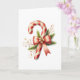 Send warm holiday wishes with this elegant Christmas card featuring a red and white candy cane tied with a satin red bow and gold flower center. Accented with pine sprigs and festive berries, this design blends classic Christmas charm with a touch of sophistication. Perfect for anyone who loves timeless holiday style. Blank inside for your personal message.