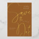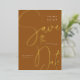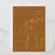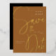 Modern Calligraphy Save the Date Foil Invitation with gold foil on a rich caramel brown background, a foil pressed big script text and a frame around the couple's names. All colours can be changed using the design tool.