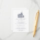 Impress your guests with this elegant formal details card by JessicaAmber. This classic card features a detailed illustration of a castle, which you can replace with an image of the destination you will be married at (transparent or white background preferred). Elegant dark blue lettering displays the travel details of the wedding, including the venue name, address, preferred travel dates, and travel agent to use for reservations.