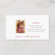 Use this pretty business card for your cat sitting or pet care business featuring an illustration of a tabby cat wearing a pink bow sitting in a bed of yellow flowers. Use the template fields provided to customise with your business information on the front and your services listed on the back.
