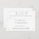Design front features your text displayed in the traditional format for a Catholic wedding response card and is framed with an elegant silver-coloured border. Heading is displayed at top in an elegant Nuptial font followed by the request line. Two options are available along with a place for recipient to write in the number of the party attending. Your message of gratitude is displayed below.