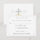 Design front features your text displayed in the traditional format for a Catholic wedding response card and is framed with an elegant silver-coloured border. Heading is displayed at top in an elegant Nuptial font followed by the request line. Two options are available along with a place for recipient to write in the number of the party attending. Your message of gratitude is displayed below.