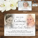 Invite friends and family to a Celebration of Life event with this elegant invitation featuring 3 photos of your loved one (2 on the front and a memorial keepsake photo on the back) and elegant calligraphy script typography in black on white. ASSISTANCE: For help with design modification or personalisation, colour change, transferring the design to another product or you would like coordinating items, contact the designer BEFORE ORDERING via the Zazzle Chat MESSAGE tab or email makeitaboutyoustore@gmail.com.