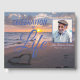 Add a favourite photo of your loved one, along with full name and life dates, to this beautiful "Celebration of Life" Guest Book designed around an amazing photo of sunset over the ocean with a heart drawn in the sand. On the back is room for a quote or Scripture especially meaningful to your late loved one. The text is in contrasting fonts in blue with the exact shade selected to contrast with the background.