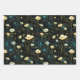 Elegant Celestial Floral Midnight Blue & Gold Wrapping Paper Sheet