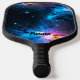 Pretty fantasy starscape with pink and blue stars in the night sky pickleball paddle, with your name customised on it.