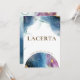 Enjoy a celestial constellation theme with our constellation table signs. Lacerta constellation table name card with exquisite watercolor stains and celestial globe map with constellations on the front. The back with a beautiful watercolor galaxy design with the Lacerta constellation in the centre. Design with blue, navy, turquoise, purple, magenta, fuchsia, and golden watercolor hues. Part of a collection with many constellation table name cards available, as well as table seating chart cards, seating plan signs, menus, and more. If you need any other constellation name not available on our collection set, please feel free to change the name using the table text box provided, so you can complete your set.