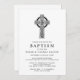 An elegant baptism invitation featuring an illustration of a Celtic cross and simple modern typography.