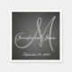 Personalised Black Chalkboard and Grey Monogram Wedding Paper Napkins. Design by Elke Clarke ©. Available at www/zazzle.com/monogramgallery*. Elegant script fonts. Customise with your bride and groom names, wedding date and wedding colours. Also great for wedding showers, wedding receptions, bridal showers, wedding anniversaries, couple showers