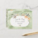 Such an elegant floral design with gorgeous ivory flowers on a sage green watercolor background. A postcard for a simpler wedding “Save the Date”. The muted colours give this invitation a romantic feel. Perfect for any season.