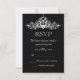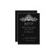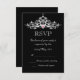 Elegant wedding RSVP card design with a highly detailed silver chandelier on a black background. This design comes on several stationery products to make a beautiful theme for all your wedding stationery.