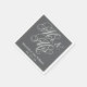 A sophisticated wedding napkin featuring "Mr. and Mrs." in ornate white flourished script against a deep charcoal background. The couple's names and wedding date are printed beneath in clean white type, creating a personalised monogram accent. A modern neutral choice for urban wedding receptions, industrial venue settings, or formal dinner tables. Fully customisable.