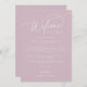 This elegant charm pink wedding itinerary template is perfect for a simple wedding. The modern minimalist design features timeless dusty rose pink and romantic calligraphy with bohemian fairytale style, perfect for a spring or summer garden wedding.