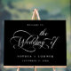 Simple black and white wedding welcome frosted acrylic sign featuring elegant, romantic swirly calligraphy lettering with a formal script. For more advanced customisation of this design, please click the BLUE DESIGN TOOL BUTTON above!