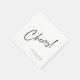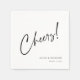 Celebrate your special day with our Elegant Cheers Wedding Napkins, featuring stylish black script on a crisp white background. The bold 'Cheers!' adds a festive touch, while the personalised names and date in a refined serif font make these napkins a unique keepsake for your wedding celebration. Perfect for receptions, cocktail hours, and intimate gatherings, these napkins add a chic and modern flair to your table setting. Crafted with quality materials, they offer a luxurious feel and are customisable to match your special occasion. Make your celebration memorable with these elegant, custom-designed napkins.