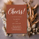 Invite your loved ones to celebrate your special day with this elegant Cheers Script Terracotta Wedding Invitation. Featuring a warm and inviting terracotta background, this design is beautifully accented with a graceful 'Cheers!' in classic white script. The earthy, rustic hue adds a touch of bohemian charm and warmth, making it perfect for fall weddings, outdoor ceremonies, desert-inspired themes, or any couple desiring a cosy and stylish celebration. Customisable with your names, wedding date, venue, and RSVP details, this invitation promises to set a unique and memorable tone for your joyful union.