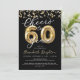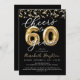 Celebrate a 60th birthday with these elegant and festive black and gold party invitations featuring the title CHEERS TO 50 YEARS in faux metallic gold balloon numbers and modern script typography with gold streamers and confetti and white lights. ASSISTANCE: For help with design modification or personalisation, colour change, transferring the design to another product or if you would like coordinating items, contact the designer BEFORE ordering via Zazzle Chat or email makeitaboutyoustore@gmail.com.