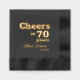 Add a touch of elegance to your 70th birthday party with these foil napkins. The design features the words, "Cheers to 70 years" in gold foil on a black background. You can personalise the design with the name of the birthday celebrant and the date. Copyright henishouseofpaper