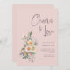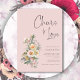 Celebrate the bride-to-be with this elegant and stylish bridal shower invitation featuring a hand-lettered "Cheers to Love" phrase in coffee pot colour, personalised name and bridal shower details in coffee pot colour, floral watercolor elements in pastel colours, and a dusty rose background.
